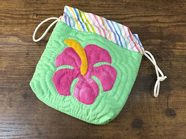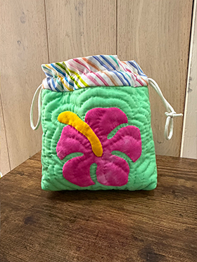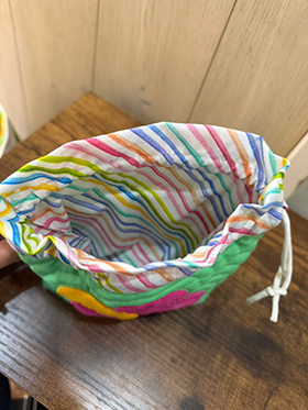 娘さんのリクエストで素敵な巾着ポーチが完成ですね。